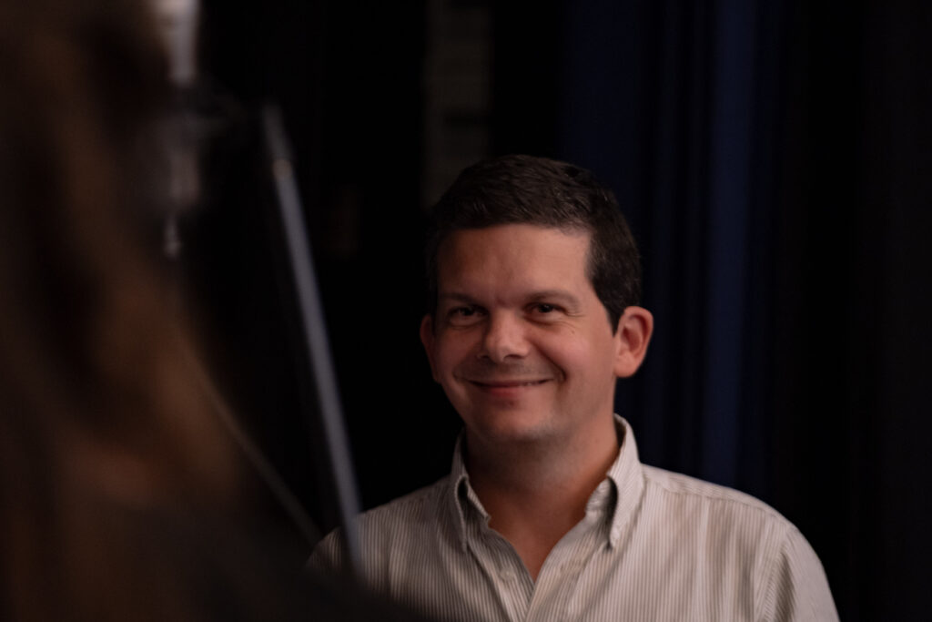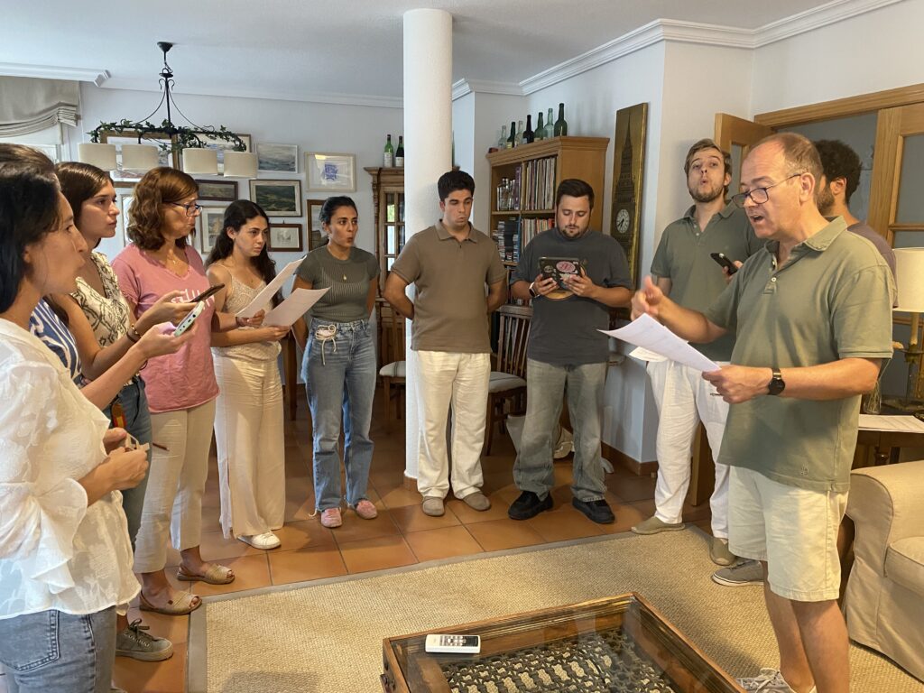 La luz es un pueblo, representado por unos amigos cantando villancicos que se distinguen a través de una ventana. En la escena se reconocen varios personajes del “mundo de hoy”: un pobre al que otro ayuda, un anciano caminando sostenido del brazo o una mujer solitaria. Entre los edificios aparece una iglesia que tiene luz en su interior y deja una puerta entreabierta a pesar de ser de noche.