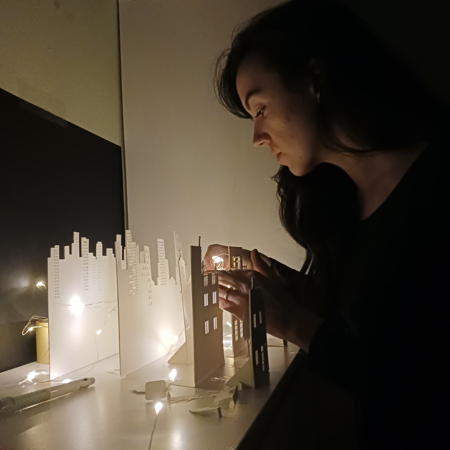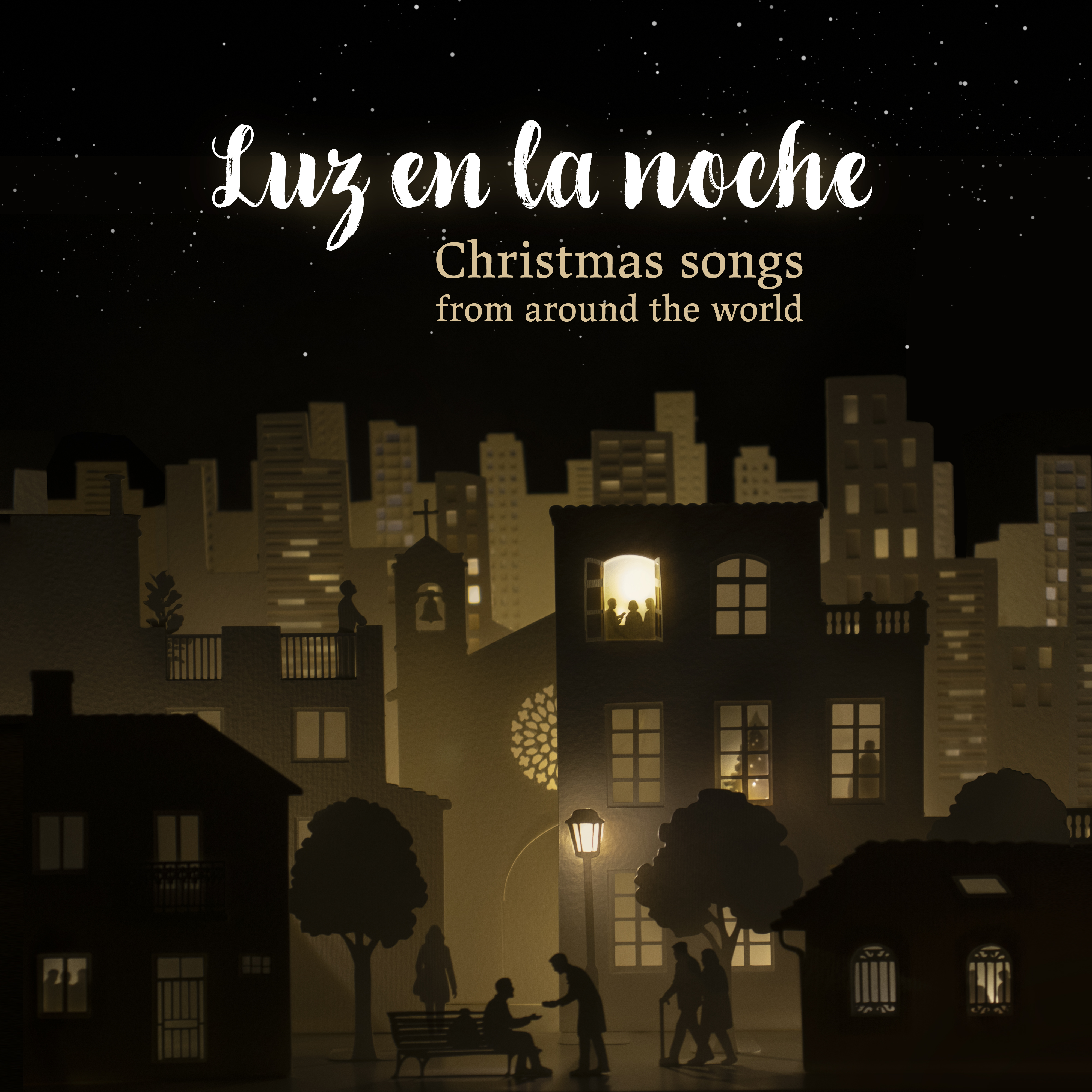 Teníamos claro que la portada tenía que expresar la idea central del álbum, es decir, una luz en la noche en medio del mundo de hoy. Se ha realizado en papel, trabajado con una técnica totalmente artesanal y tradicional, y con el que se ha escenificado una ciudad durante la noche. Los planos de la ciudad, los edificios y las personas se crean todos ellos con papel recortado, iluminados desde atrás con el fin de dar profundidad a la escena. Una vez compuesta la misma, se realiza una fotografía, que es la portada.